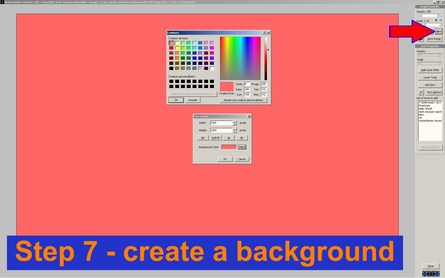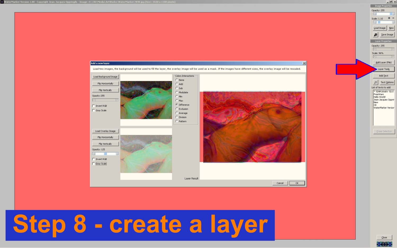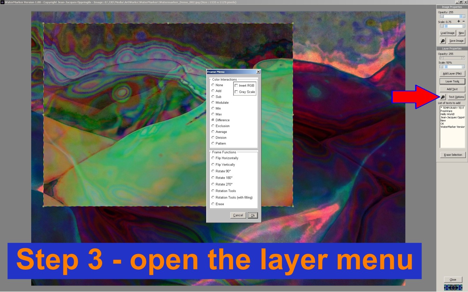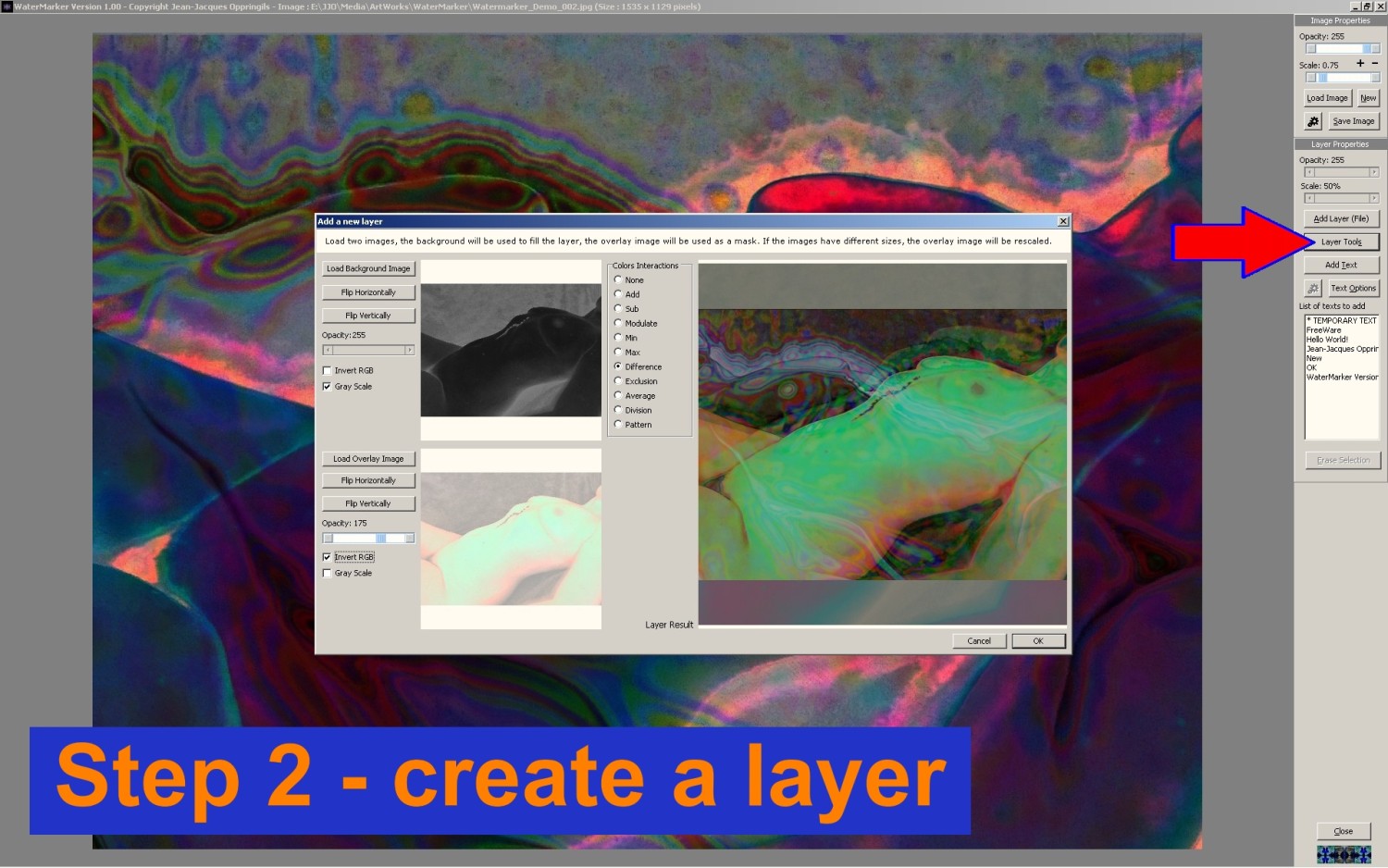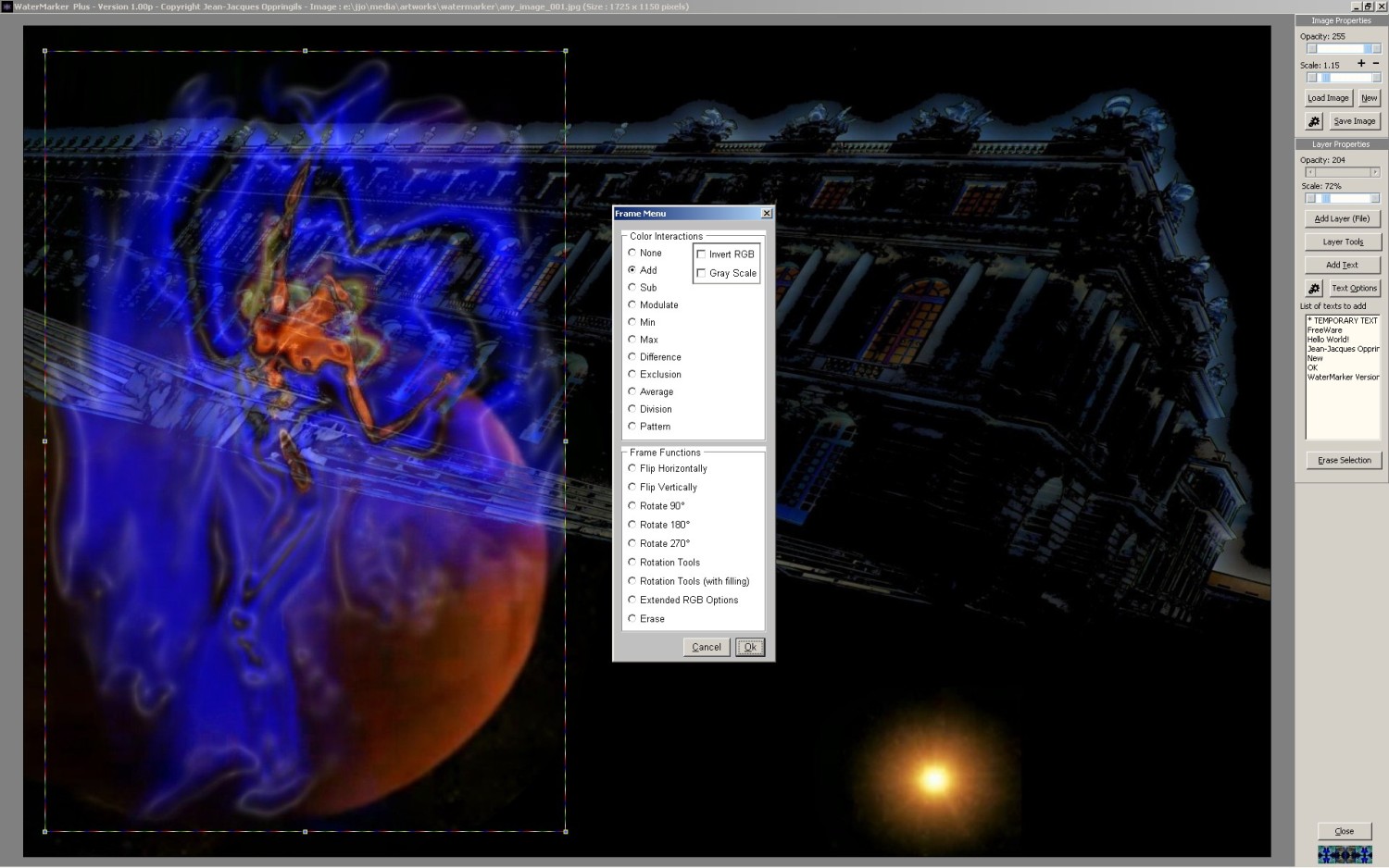 If you want more options, you can upgrade to the WaterMarker Plus version WaterMarker Plus example of use : How to create the following artwork with this program ?