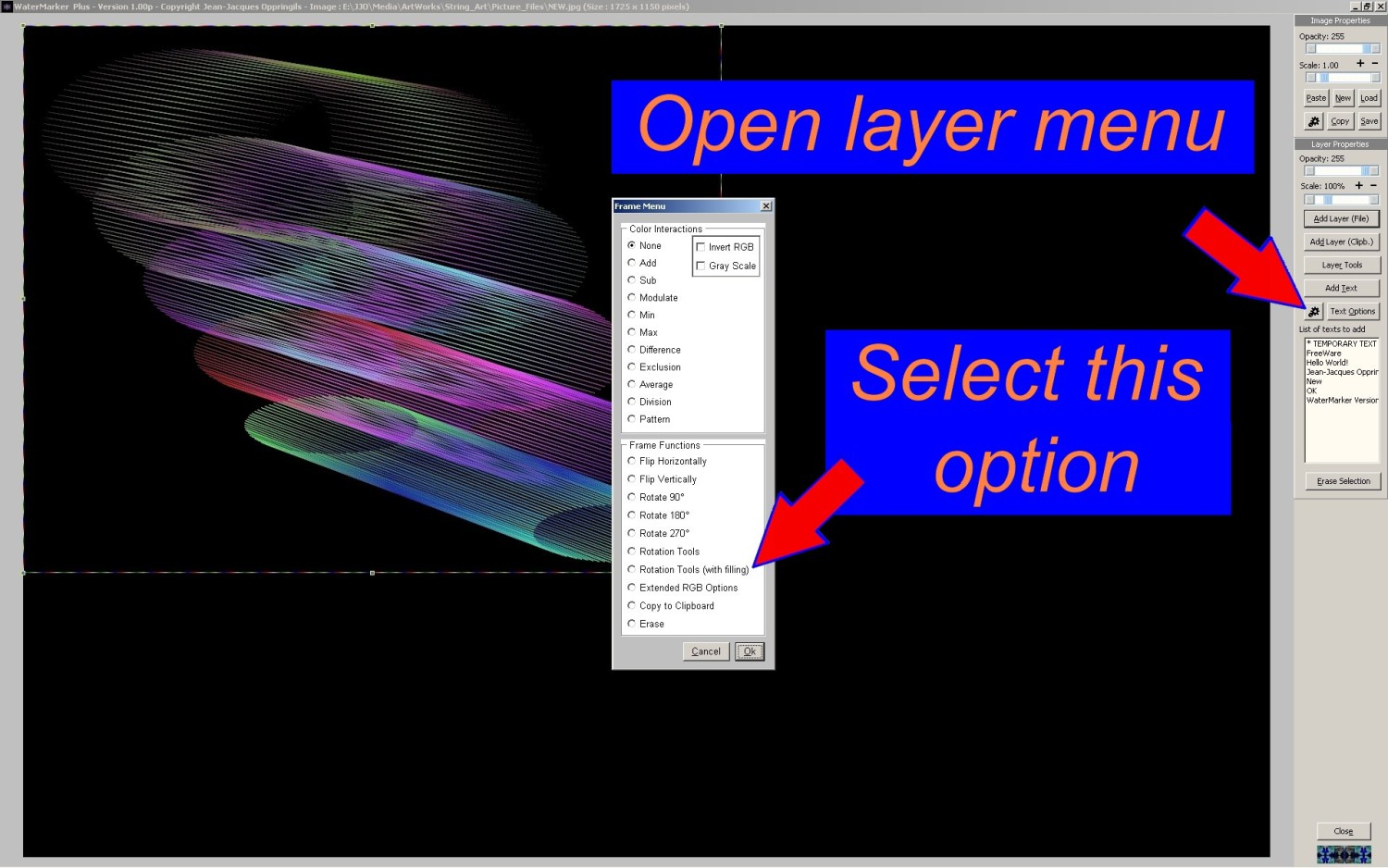 Rotation example of use : How to create the following picture with this program ?