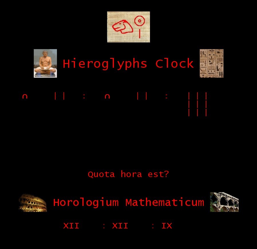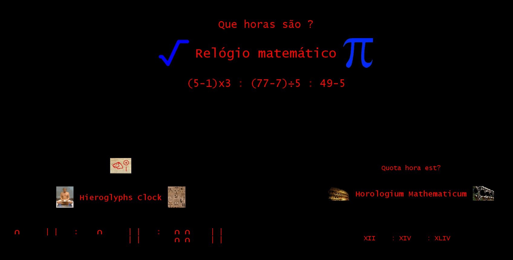 Math Clock - Horloge Mathématique - Matheuhr - Orologio matematico - Wiskunde klok - Relógio matemático - Reloj matemático - ρολόι μαθηματικά - Horologium Mathematicum - Hieroglyphs Clock